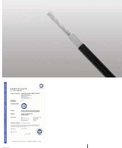 備注:我公司可以根據(jù)用戶的要求生產(chǎn)除TUV認證以外的光伏電纜,也可以生產(chǎn)多芯(2~5芯、截面1~16 mm2)光伏電纜,同時能夠為光伏電站連接技術提供一系列的解決方案。