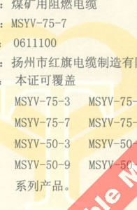 國家采煤機(jī)械質(zhì)量監(jiān)督檢驗(yàn)中心檢驗(yàn)合格證--煤礦用阻燃電纜(MSYV-75-7)