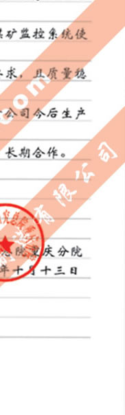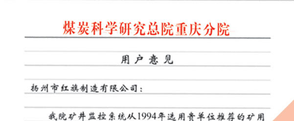 煤炭科學(xué)院總院重慶分院對我公司長期以來產(chǎn)品各項性能符合要求、質(zhì)量穩(wěn)定、交貨及時、服務(wù)周到的贊譽
