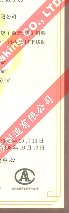 國(guó)家采煤機(jī)械質(zhì)量監(jiān)督檢驗(yàn)中心檢驗(yàn)合格證--煤礦用阻燃電纜(MYC-0.66/1.14,MY-0.38/0.66)