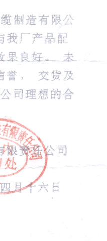 沈陽高壓開關有限責任公司贊譽我公司產(chǎn)品質(zhì)量和公司信譽