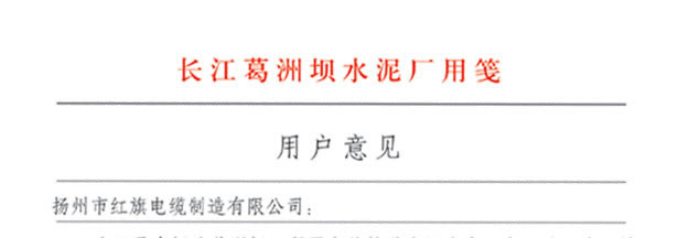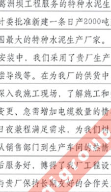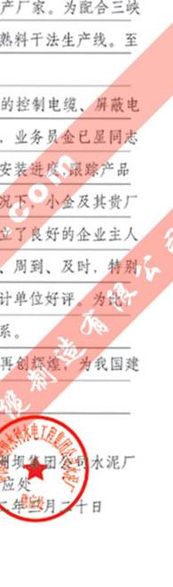 長江葛洲壩水泥廠對我公司服務熱情、交貨及時、產(chǎn)品質量好的評價