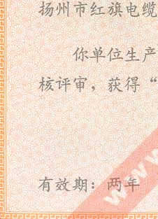 揚(yáng)州市重點(diǎn)保護(hù)產(chǎn)品稱號(hào)證書(聚氯乙烯絕緣護(hù)套電纜產(chǎn)品)