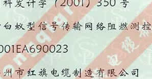 國家級(jí)星火計(jì)劃項(xiàng)目證書(防白蟻型信號(hào)傳輸網(wǎng)絡(luò)阻燃測(cè)控電纜)