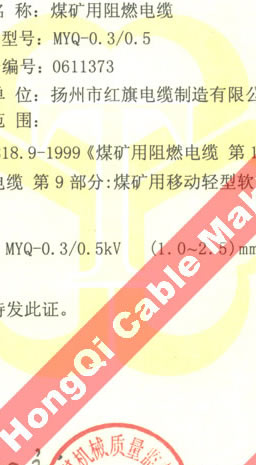 國家采煤機(jī)械質(zhì)量監(jiān)督檢驗(yàn)中心檢驗(yàn)合格證--煤礦用阻燃電纜(MYQ-0.3/0.5)
