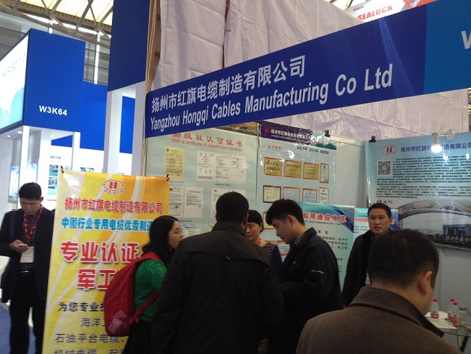 在揚(yáng)州市紅旗電纜公司展位上,該公司展示了多年來(lái)研發(fā)和生產(chǎn)的船用通信電纜、船用控制電纜、船用電力電纜、艦用通信電纜、艦用控制電纜、艦用電力電纜、海洋工程用電力電纜、海洋工程用通信與儀表電纜、石油平臺(tái)電纜、港口機(jī)械電纜、起重器具電纜等多系列“和字”牌船艦與海工電纜產(chǎn)品,吸引了眾多的新老客商(包括歐美及東南亞地區(qū)的)前來(lái)參觀、咨詢、洽談。廣大客戶通過(guò)近距離的查看電纜實(shí)物樣品和翻閱電纜選型手冊(cè),與現(xiàn)場(chǎng)服務(wù)人員面對(duì)面的溝通交流,同時(shí)觀看企業(yè)宣傳海報(bào)和宣傳片,對(duì)揚(yáng)州紅旗電纜公司的企業(yè)規(guī)模、生產(chǎn)能力、生產(chǎn)裝備、檢測(cè)手段、質(zhì)保能力、研發(fā)能力、產(chǎn)品種類(lèi)等有了更多的了解,新客戶紛紛表示今后進(jìn)一步關(guān)注揚(yáng)州紅旗,逐步建立首次合作關(guān)系;老客戶也紛紛表示將進(jìn)一步加大與該公司緊密合作,希望建立長(zhǎng)期戰(zhàn)略合作伙伴關(guān)系,蒞臨展會(huì)現(xiàn)場(chǎng)的該公司相關(guān)領(lǐng)導(dǎo)衷心地希望廣大客戶繼續(xù)關(guān)注和支持揚(yáng)州紅旗公司的發(fā)展,加強(qiáng)合作,實(shí)現(xiàn)雙贏!